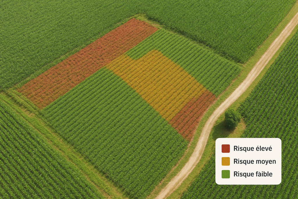 Chaque risque maladie est modélisé en temps réel selon les conditions climatiques et le stade de développement de la culture.