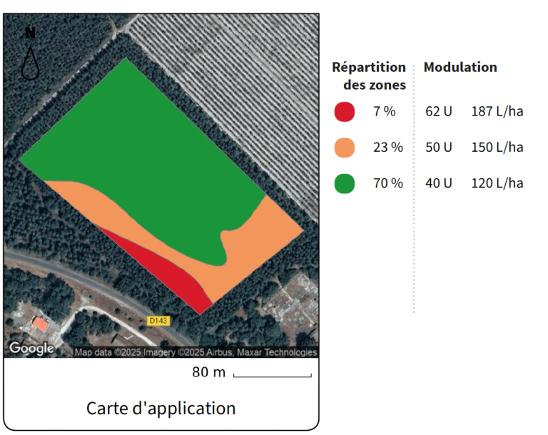 La modulation répartit cette dose totale de manière adaptée aux zones de la parcelle.